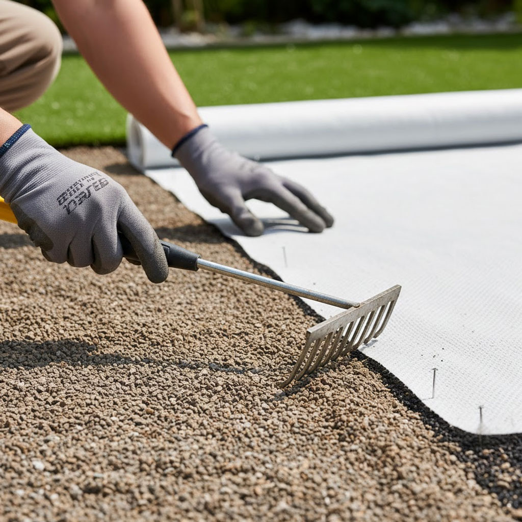 Préparation complète du sol, nivellement, géotextile et pose du gazon pour un rendu plus vrai que nature.Pose sur terrasse ou balcon