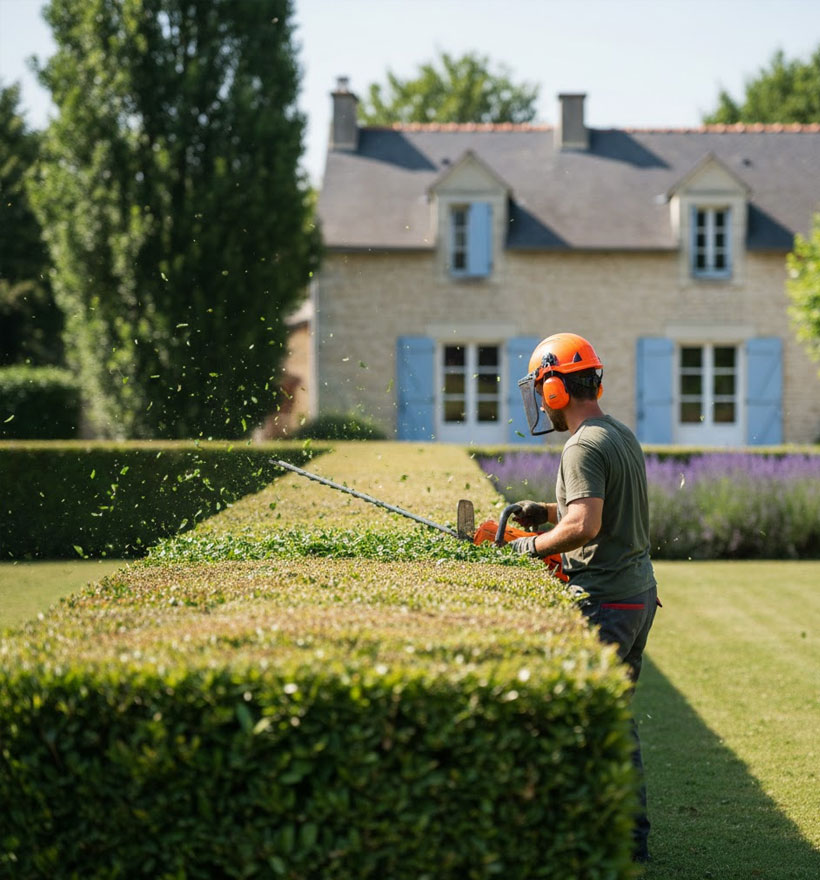 Nous travaillons avec des taille-haies professionnels, du matériel affûté et des équipements de protection individuelle, afin de garantir une coupe nette, régulière et un travail en toute sécurité.